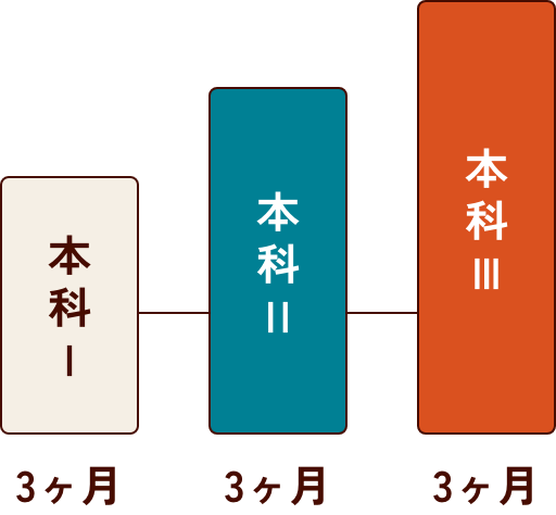 ※3ヶ月ごとに本科I・II・IIIとステップアップします