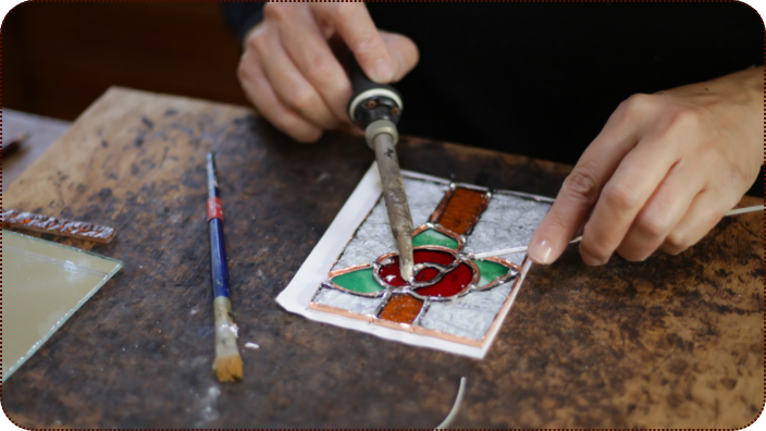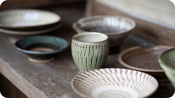 クラフトパークでは、吹きガラス・キルンワーク・バーナーワーク・ステンドグラス・陶芸・染色・織物・木工・金工の9部門を中心に、多彩な工芸教室を開講しています。魅力ある工芸作品に触れながら、志を同じくする仲間と語らい、ものづくりの時間を楽しんでいただけます。
