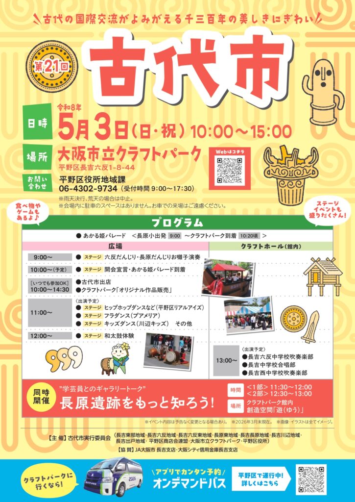 例年、大阪市立クラフトパークを会場に開催されている「古代市」イベントが今年も開催されます。